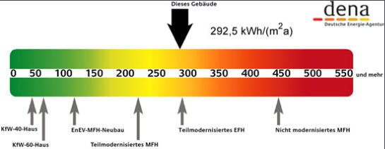 Bitte beachten sie das im Zuge der Novellierung der ENEV (Energieeinsparverordnung) 2013/2014 die Darstellung der Energieeffitienzkennleiste geändert