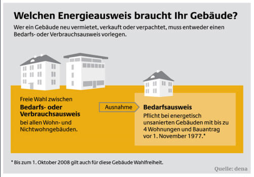 vergangen Jahre zugrunde, die stark vom Verhalten der Bewohner abhängen. Die dena empfiehlt hingegen den Bedarfsausweis. Zur Ausstellung berechnet