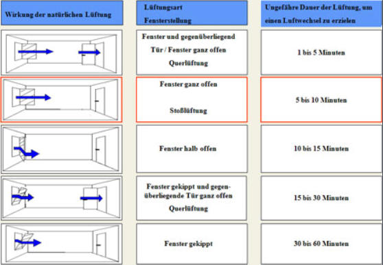 Fenster liegenden Wände und der gesammte Raum aus. Besonders effekiv ist die Stoßlüftung. Öffnen