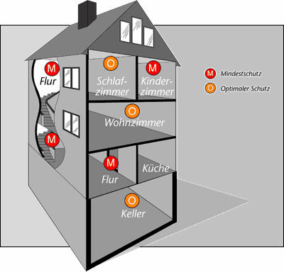 Melder gehört in jedes Schlaf- und Kinderzimmer sowie -wenn möglich-in den Keller und auf den Dachboden. Optimalen Schutz bieten